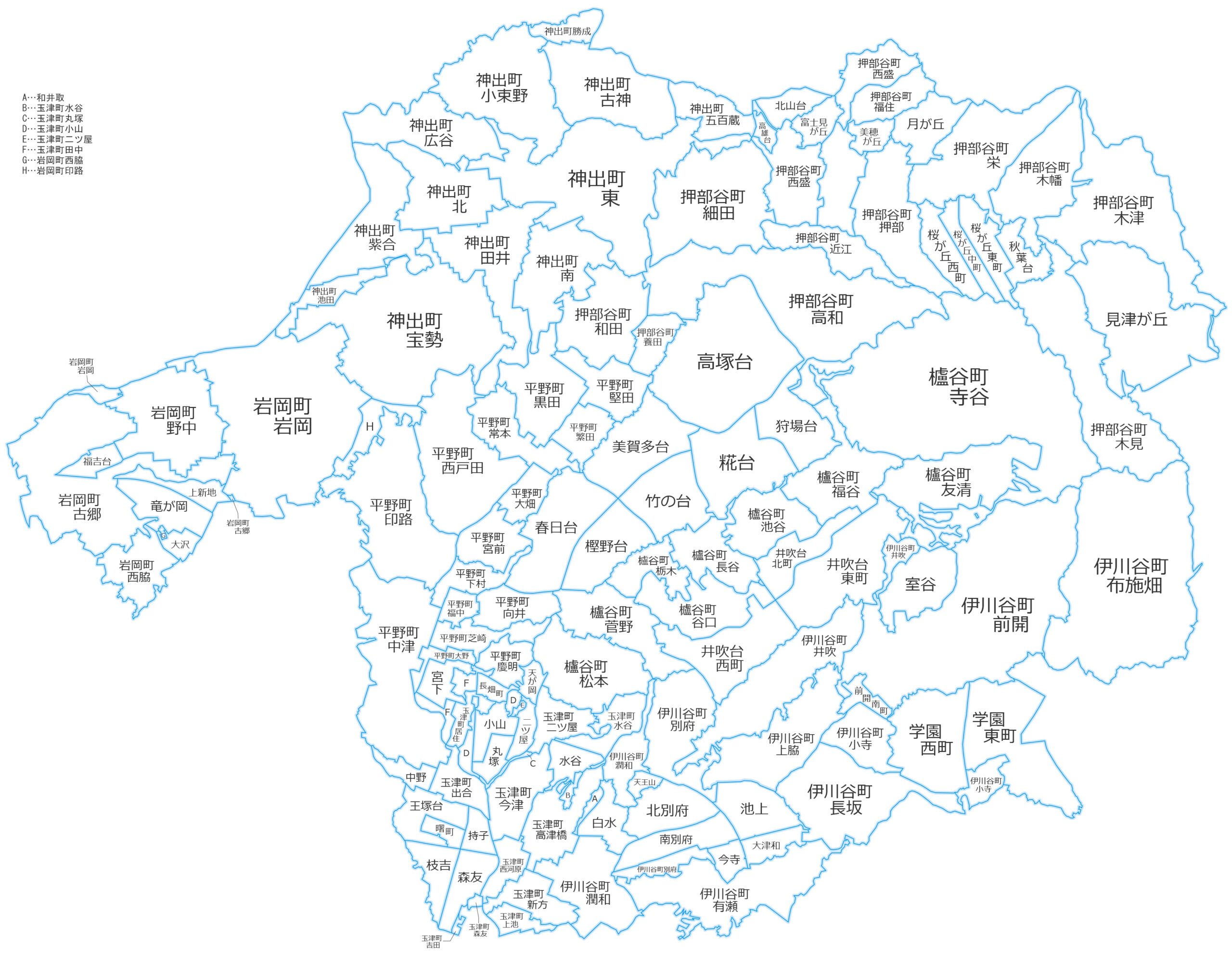 押部谷町一帯、神出町一帯、平野町一帯、櫨谷町、岩岡町岩岡、玉津町新方